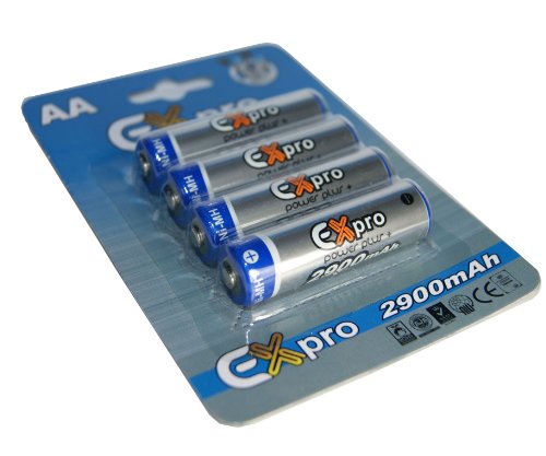 Ex-Pro® Power Plus+ Ultra Blister de 4 piles rechargeables Type AA - 2900mAh Batteries NiMH - pour Digital Camera suitable for Canon, Olympus, Nikon, Casio, Fuji, Pentax, Panasonic, Samsung Digimax, HP Photosmart camera's using AA Battery