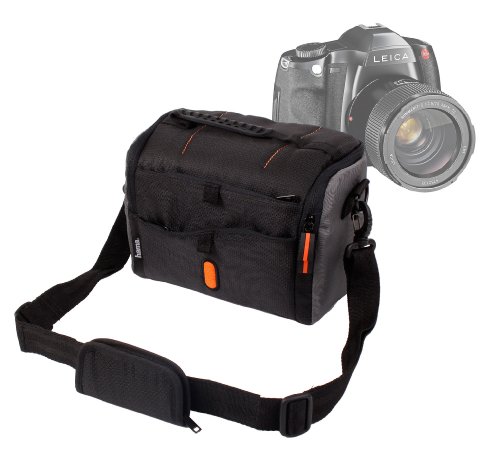 Etui housse noir/orange DURAGADGET pour appareil photo SLR Reflex Panasonic Lumix DMC-FZ200EGK, Leica S2 et Praktica LM16-Z26S (boîtier nu) - Garantie 2 ans